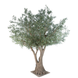 Olivier millénaire artificiel de 430 cm de haut pour environ 480 cm de large. Doté d'un tronc en fibre de verre et d'un branchage en bois naturel portant un feuillage en polyester. Livré avec une base platine. Un colosse végétal pour une décoration style méditerranéen hors du commun.