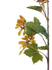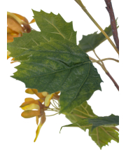 Les feuilles et les samares sont en polyester tergal. En termes de réalisme, elles produisent leur effet. L'imitation est soignée avec des feuilles à lobes découpés qui ressemblent en tous points aux vraies. Les couleurs qui offrent des nuances sont également conformes et participent à la crédibilité du feuillage.