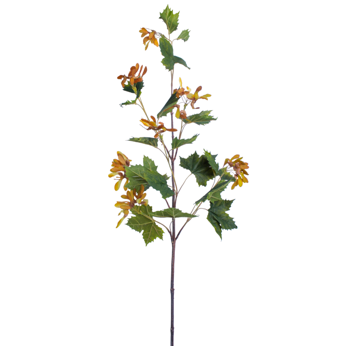 Branche d'érable artificielle avec fruits de 125 cm de haut pour environ 40 cm d'envergure. Pourvue d'un feuillage émaillé d'hélicoptères en polyester, fixé sur une tige armée à mémoire de forme. Une branche décorative d'un grand réalisme pour la décoration intérieure.